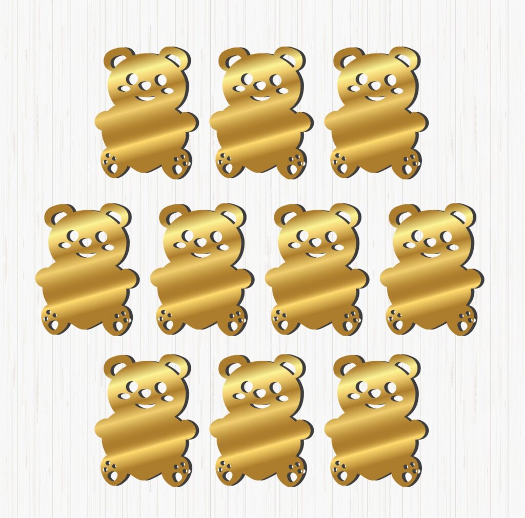 Teddy Shape Acrylic Cutouts Set Of 10 Golden