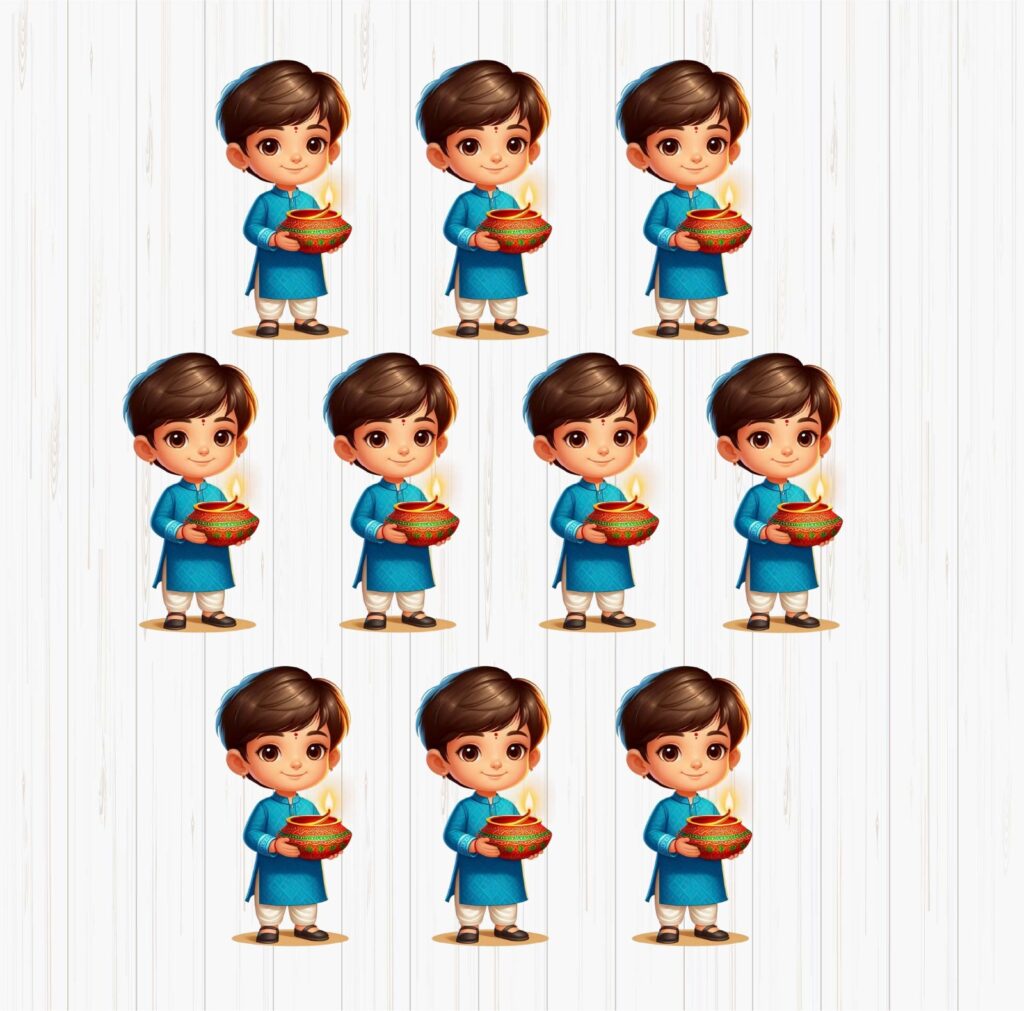 Diwali Special Boy With Diya Small Sunboard Cutouts Set of 10
