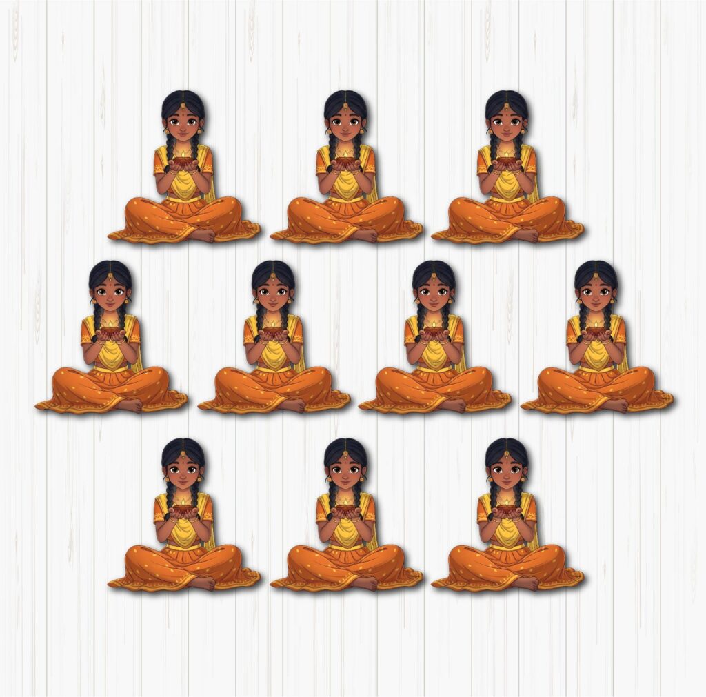 Diwali Special Girl with Diya Small Sunboard Cutouts Set of 10