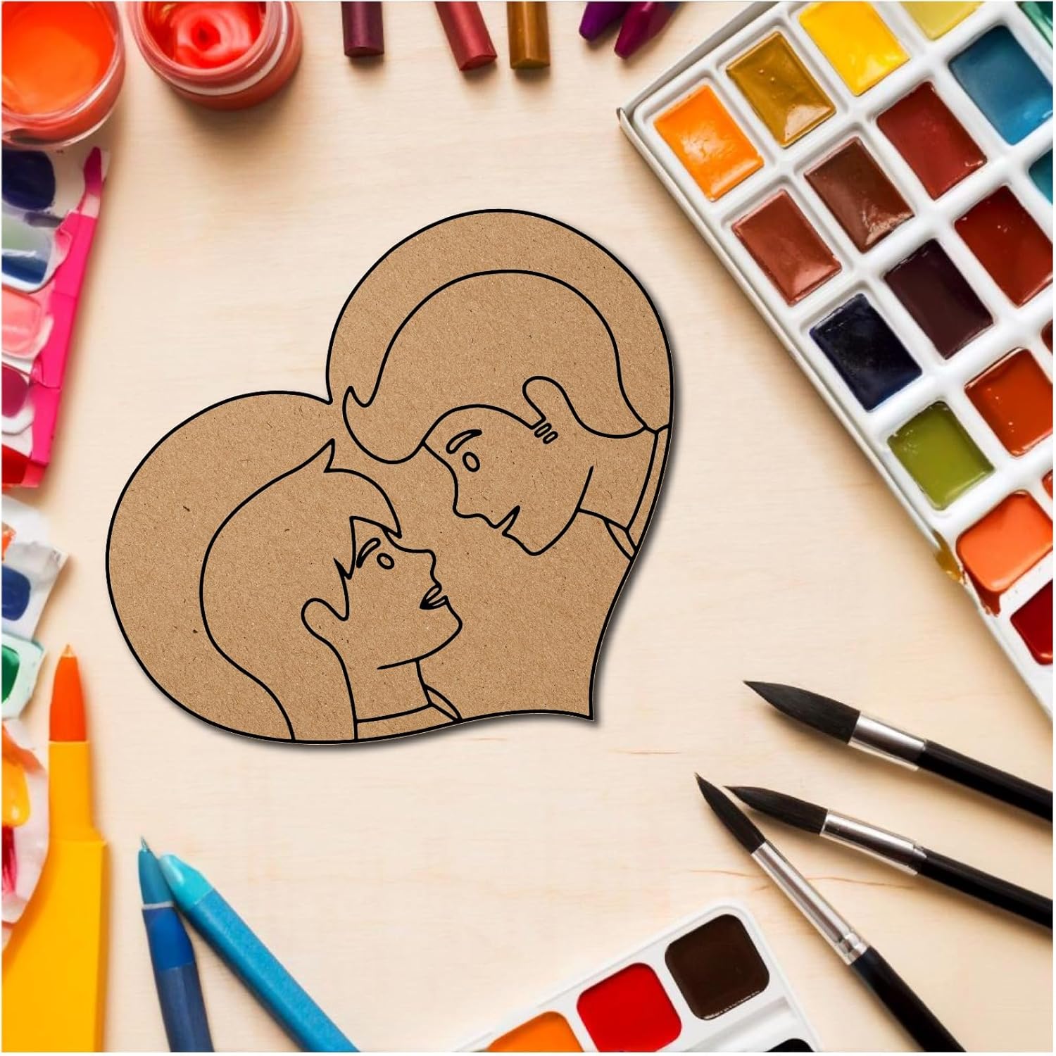 Couple Love with Heart Shaped Pre-Marked DIY MDF Base