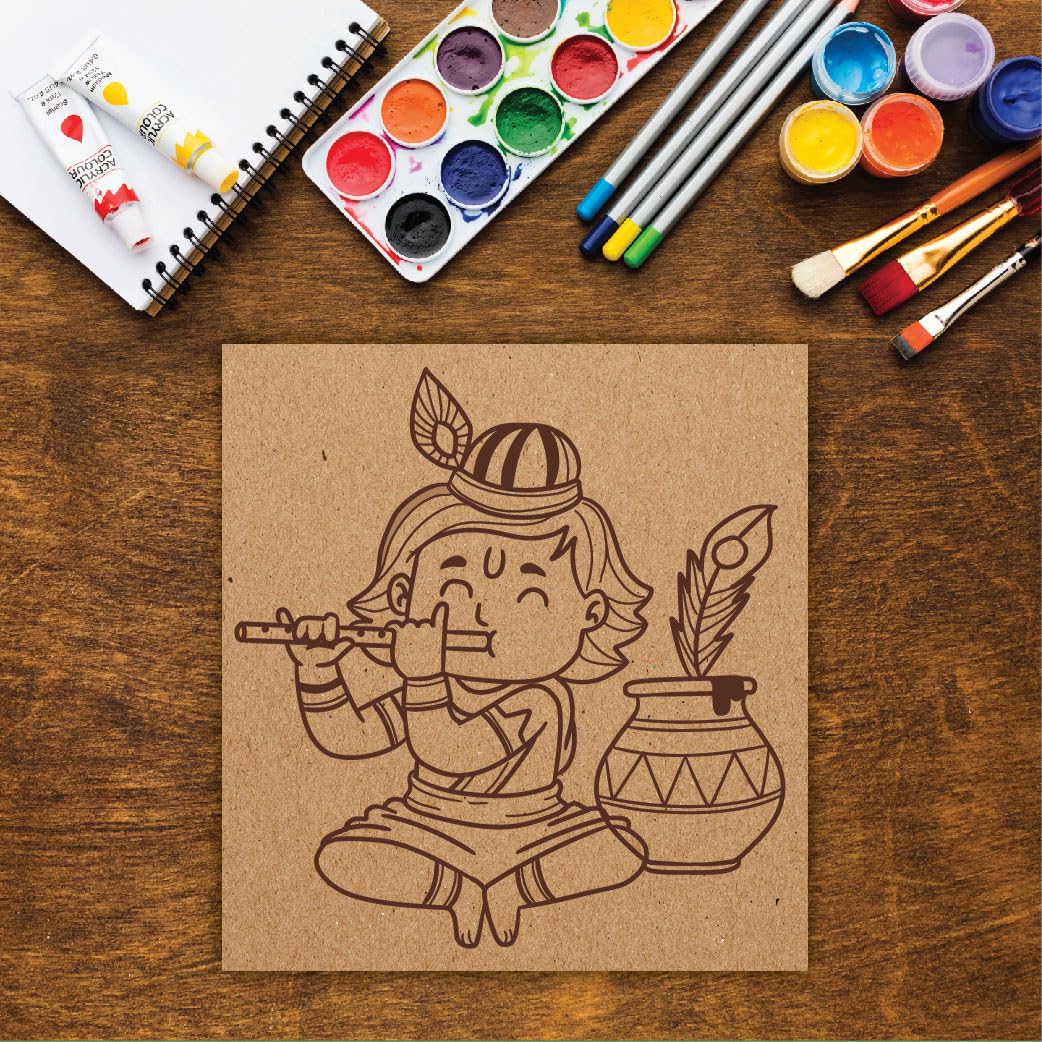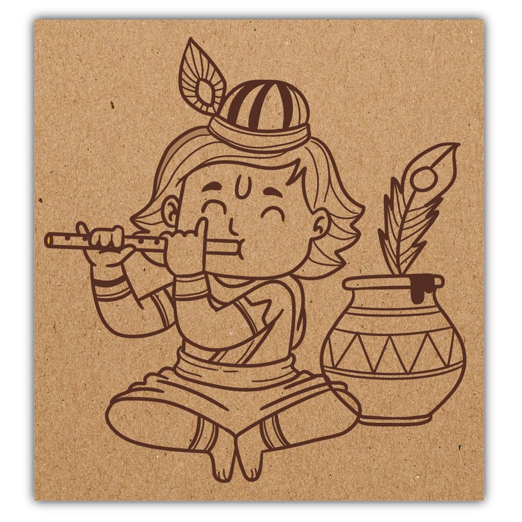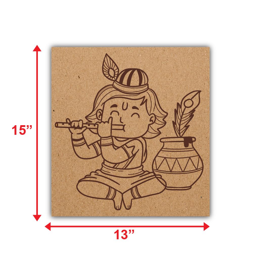 DIY Pre-Marked Lord Krishna Design on MDF 3mm Thick for Painting, Art & Craft