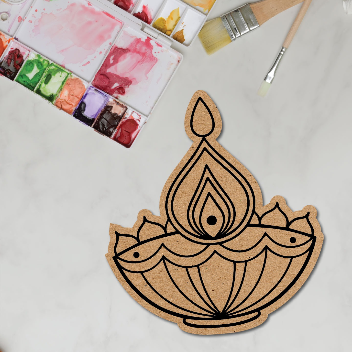 These are pre-marked MDF bases for painting that have been pre-cut and pre-marked with a design or pattern that can be used for colouring and painting according to your choice. These pre-marked MDF bases can save a lot of time for artists and people who want to create a specific design or pattern without having to spend time measuring and marking the MDF panel themselves.