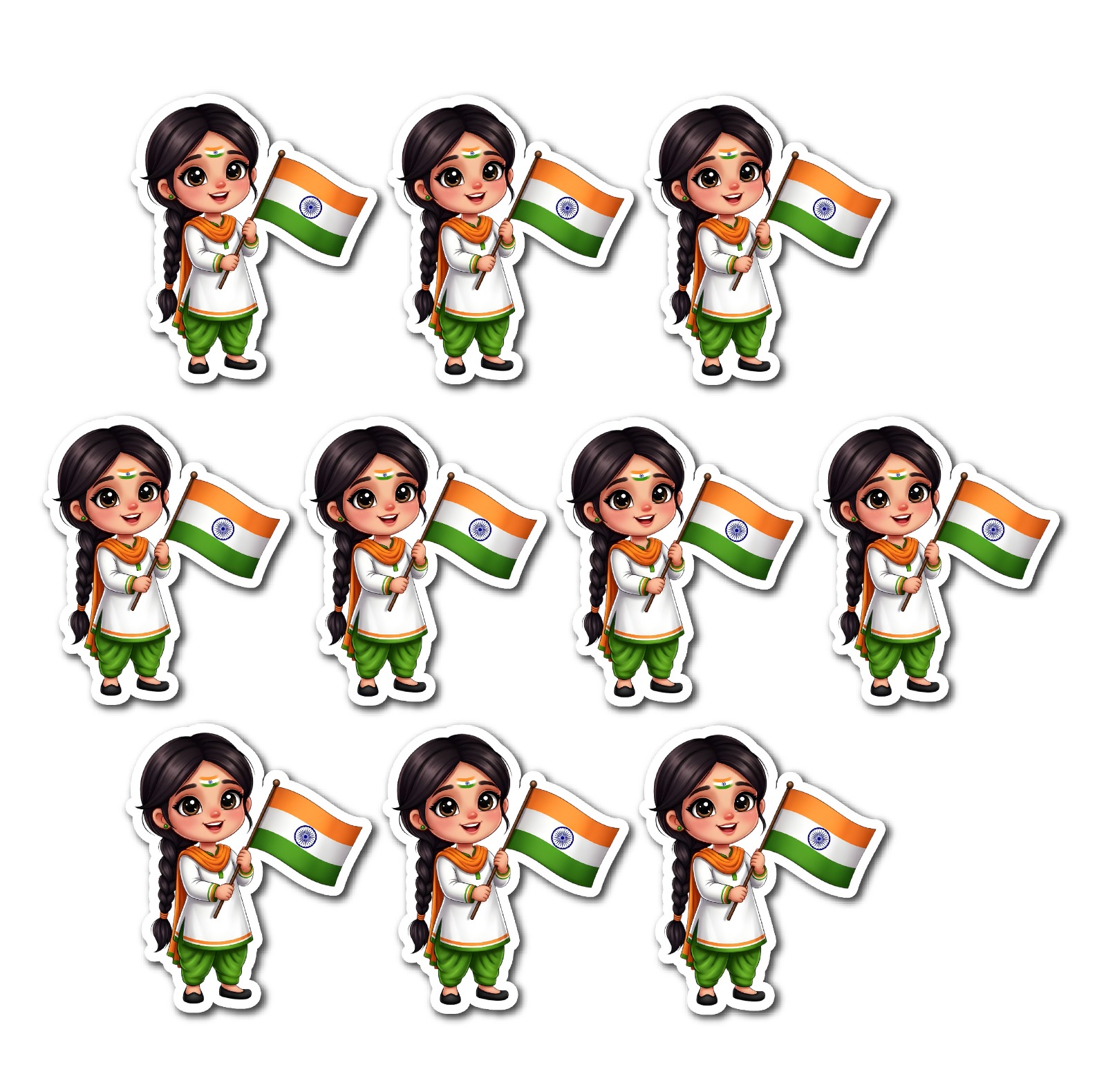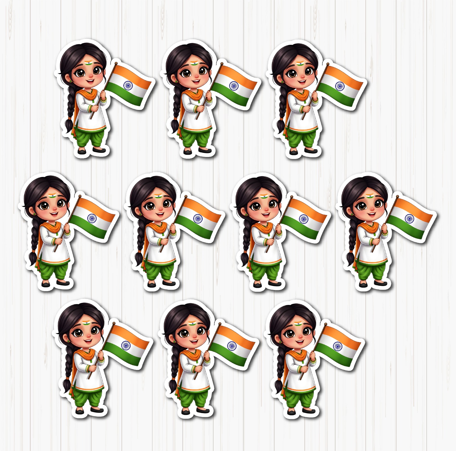 Celebrate patriotism with beautifully designed Indian Flag With Girl Small Sunboad Cutouts that symbolize pride and national spirit. Featuring a girl holding the Indian flag, these cutouts are perfect for Republic Day, Independence Day, schools, and cultural events. Crafted from quality sunboard, they offer durability and visual appeal.