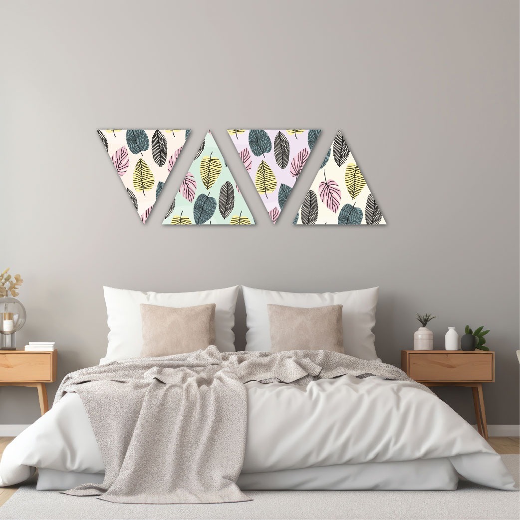 • These triangle art pieces can be styled and installed in different places like bedroom, drawing room, office walls , restaurants etc