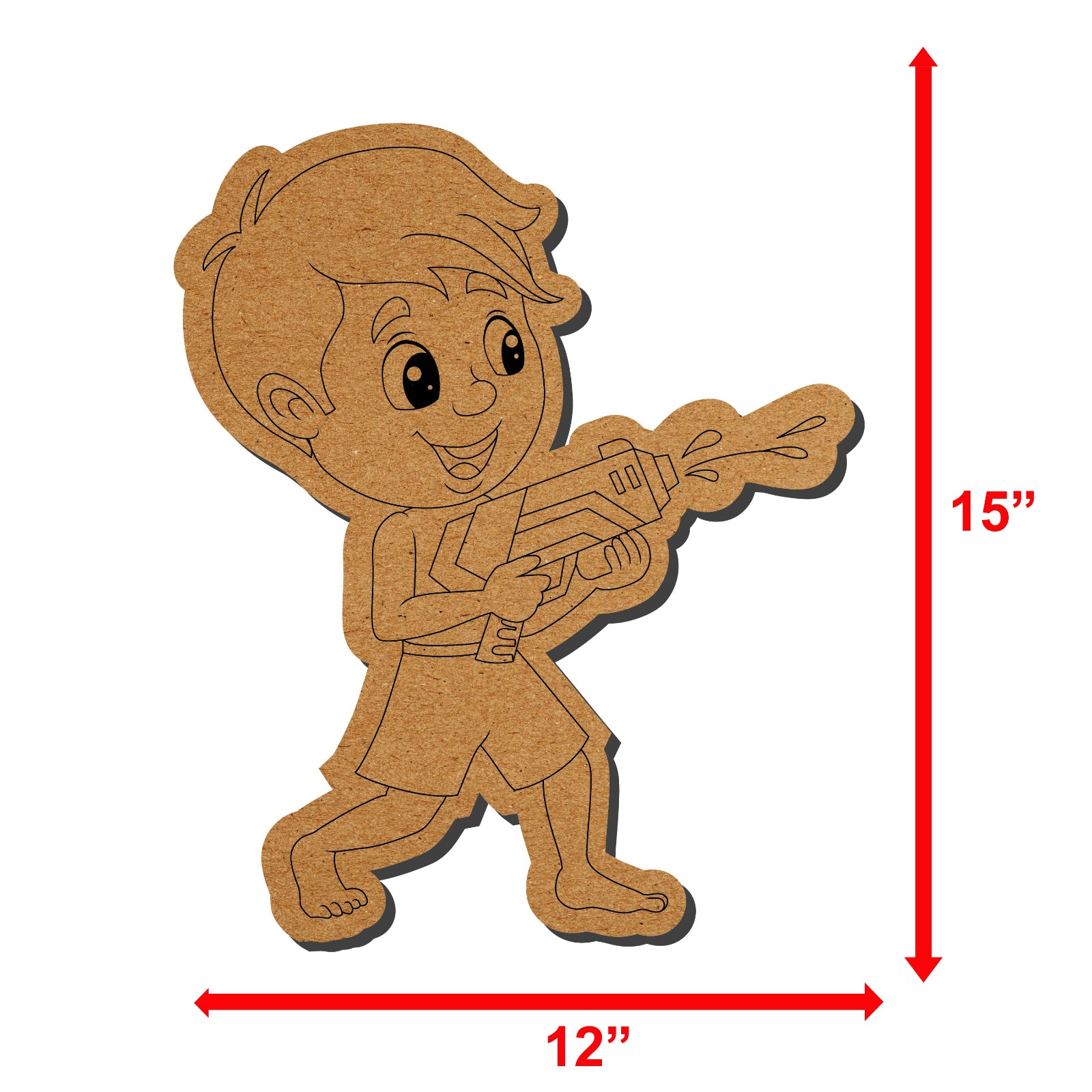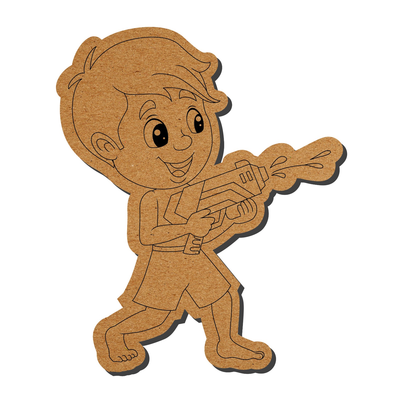 Made from quality MDF material with smooth edges, the Little boy playing water gun Pre-Marked DIY MDF Base is durable, safe, and perfect for repeated creative use.