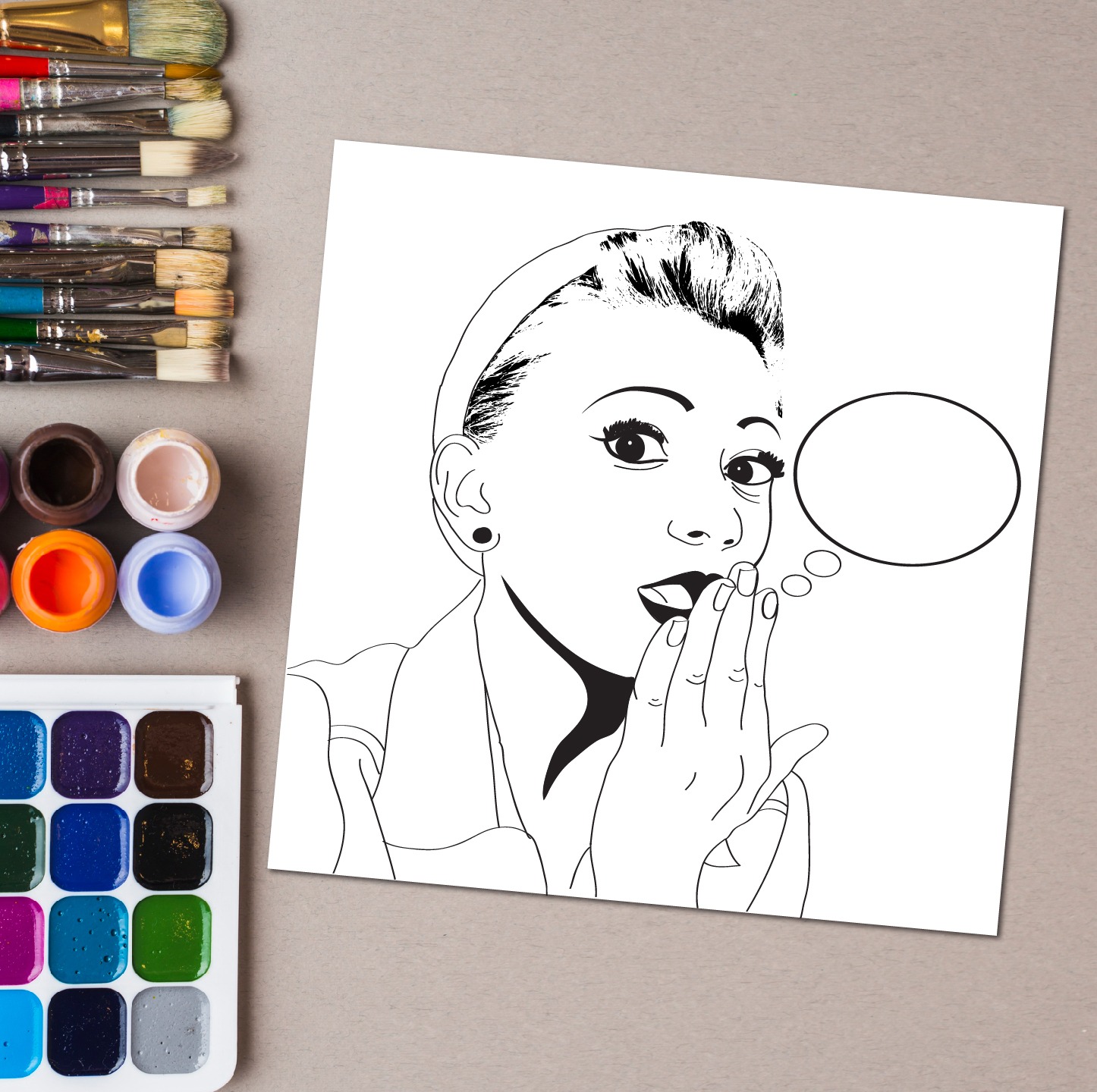 Vintage Pop Art Girl Sketch DIY Pre-marked Canvas Base
